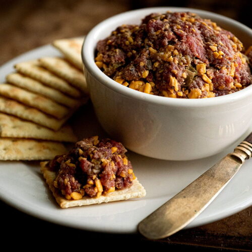 Mix together the ground beef, cheese, jalapeños, onion, garlic, lime juice, cumin, salt, and black pepper. Taste and adjust seasonings. Chill for 1 hour.